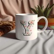 G Harfli Çiçek Desenli Kupa Bardak - Ekose Desenli Yeşil Pembe Desenli Tasarım - Kişiye Özel Hediye Beyaz