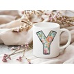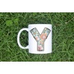 Y Harfli Pastel Çiçek Desenli Kahve Kupası - Kişiye Özel Çiçekler Koleksiyonu Bardak - Hediye Beyaz