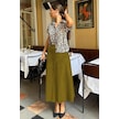 Yağ Yeşili Süet Uzun Etek Mg2549 Yağ Yeşili