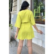Yağ Yeşili Yaka Detaylı Lastikli Kloş Elbise Yağ Yeşili