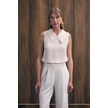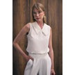 Yaka İncili Kolsuz Bluz - Bej-136428 Bej
