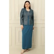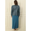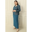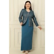Yaka Taşlı Astarlı Uzun Krep Elbise Pullu Ceket Büyük Beden 2'li Takım-34876 Petrol Mavisi