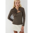 Yakası Halka Detaylı Bluz Kahverengi Kahverengi