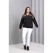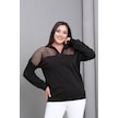 Yakası Taşlı File Detaylı Sweatshirt Siyah