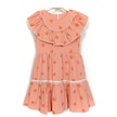 Yakası Ve Etek Ucu Fırfırlı Nakışlı Kız Çocuk Ekose Elbise 2033 Turuncu