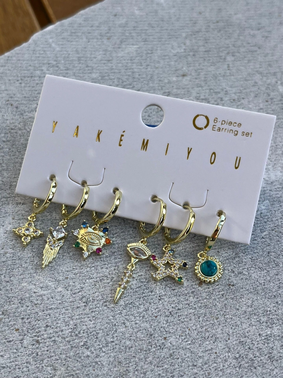 Yakemiyou Renkli Taşlı Karışık Desenli Altılı Küpe Çok Renkli