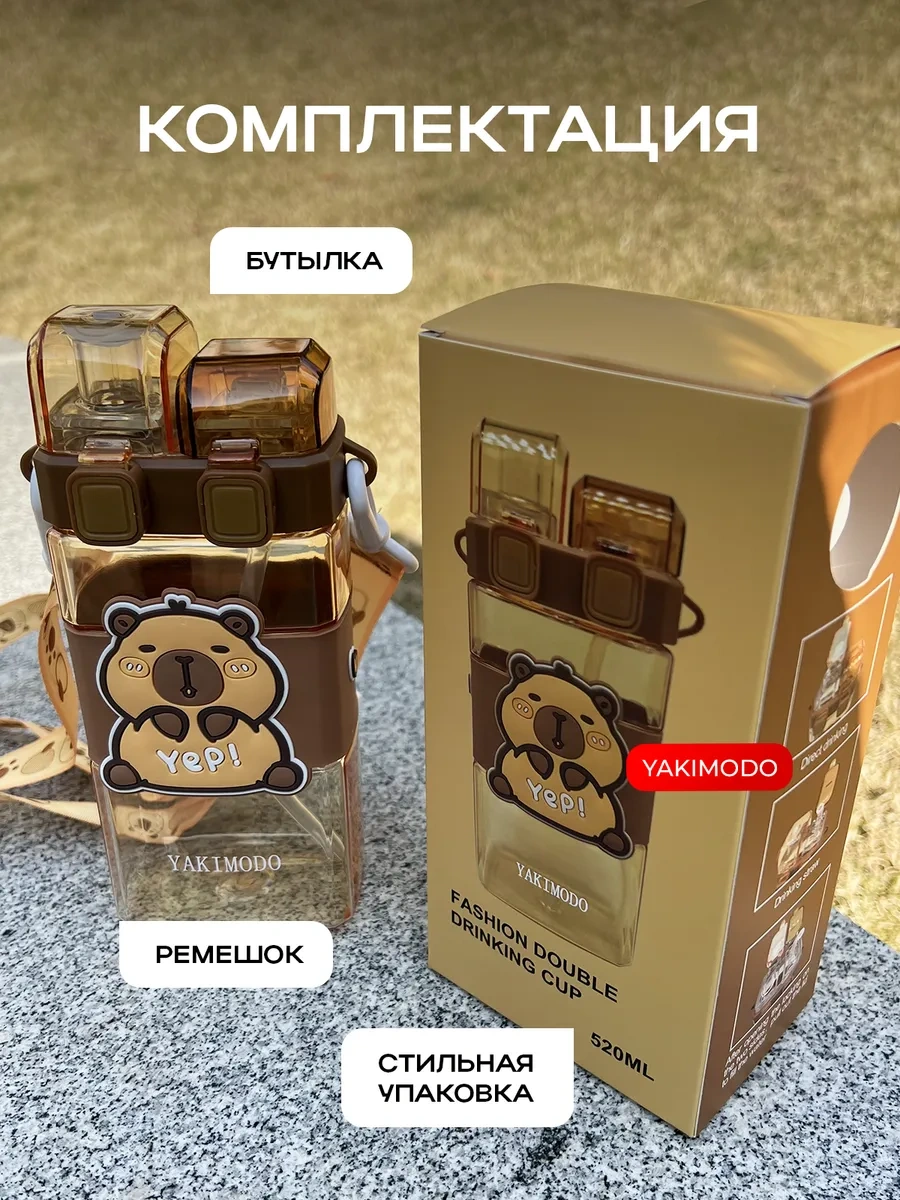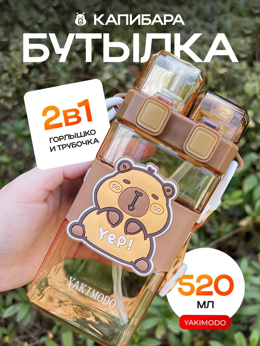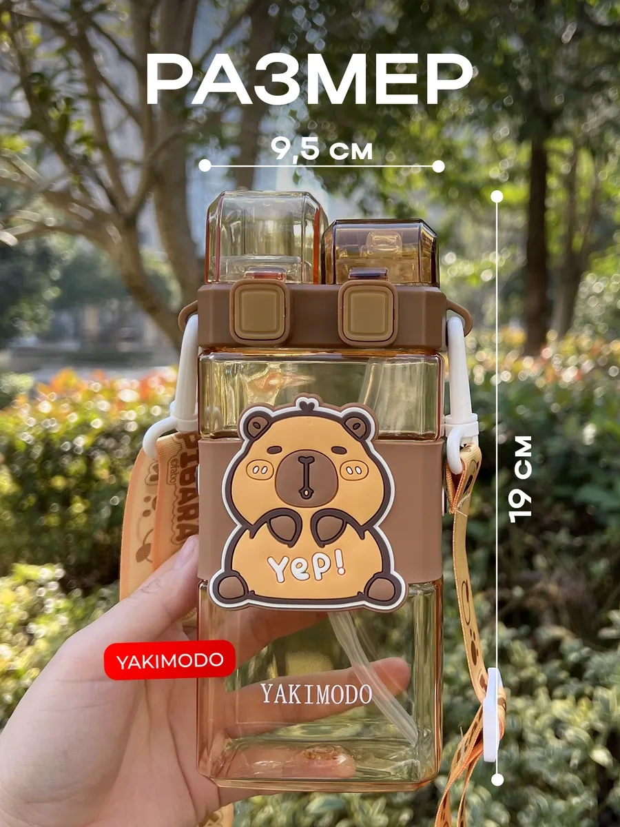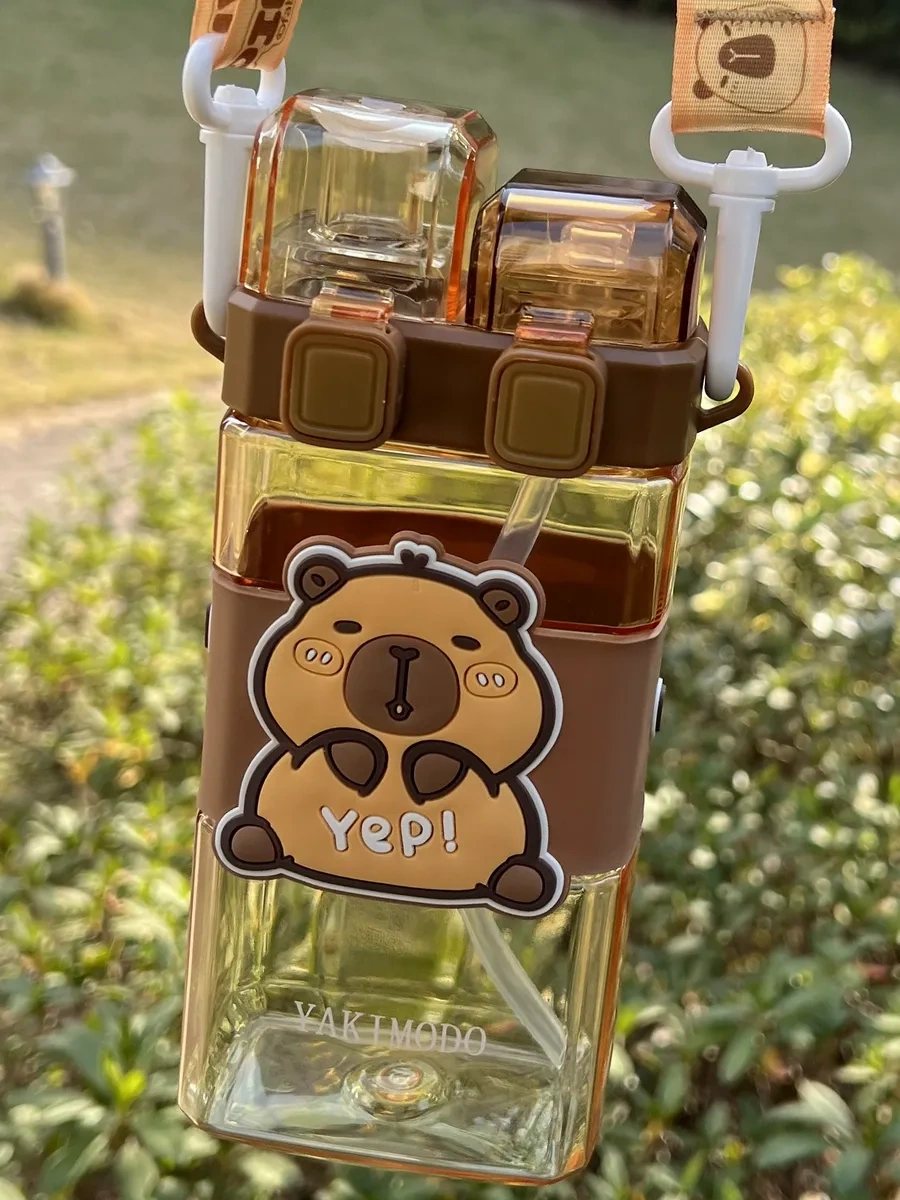 Yakımodo Çocuklar İçin Pipetli Kapibara Desenli Okul Su Matarası 327218902 Kahverengi
