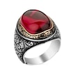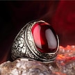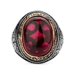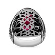 Yakut Ruby Taşlı Kalem Işleme Desenli Gümüş Erkek Yüzük