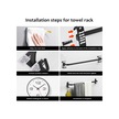 Yaleker Banyo Duvar Montajlı Havuzsuz Bez Çubuğu - Uzay Alüminyum - Su Geçirmez - 10kg Yük Kapasitesi - 40cm Tek Çubuk Siyah