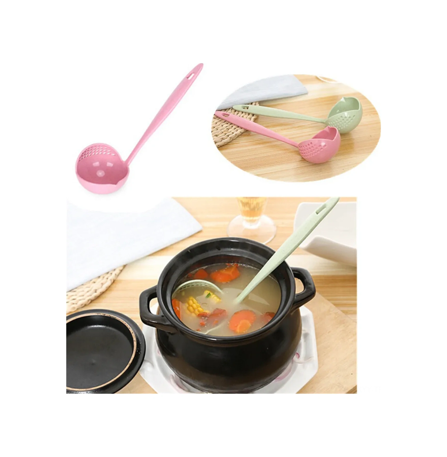 Yaleker Çevre Dostu Askılı Kelleli Kaşık - Yiyecek Grade Plastik, Sürekli Kullanımlı, Filtre Fonksiyonu, Yeşil Renk Pembe