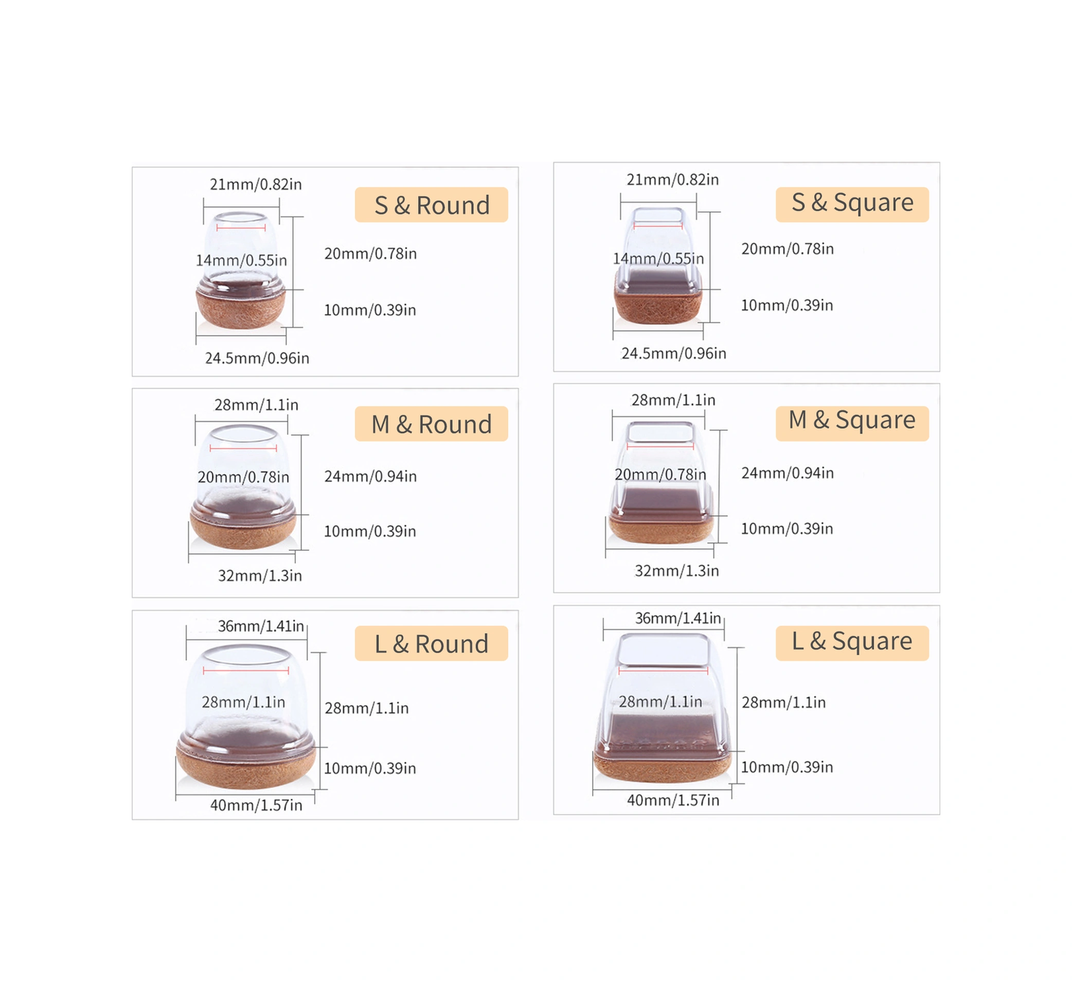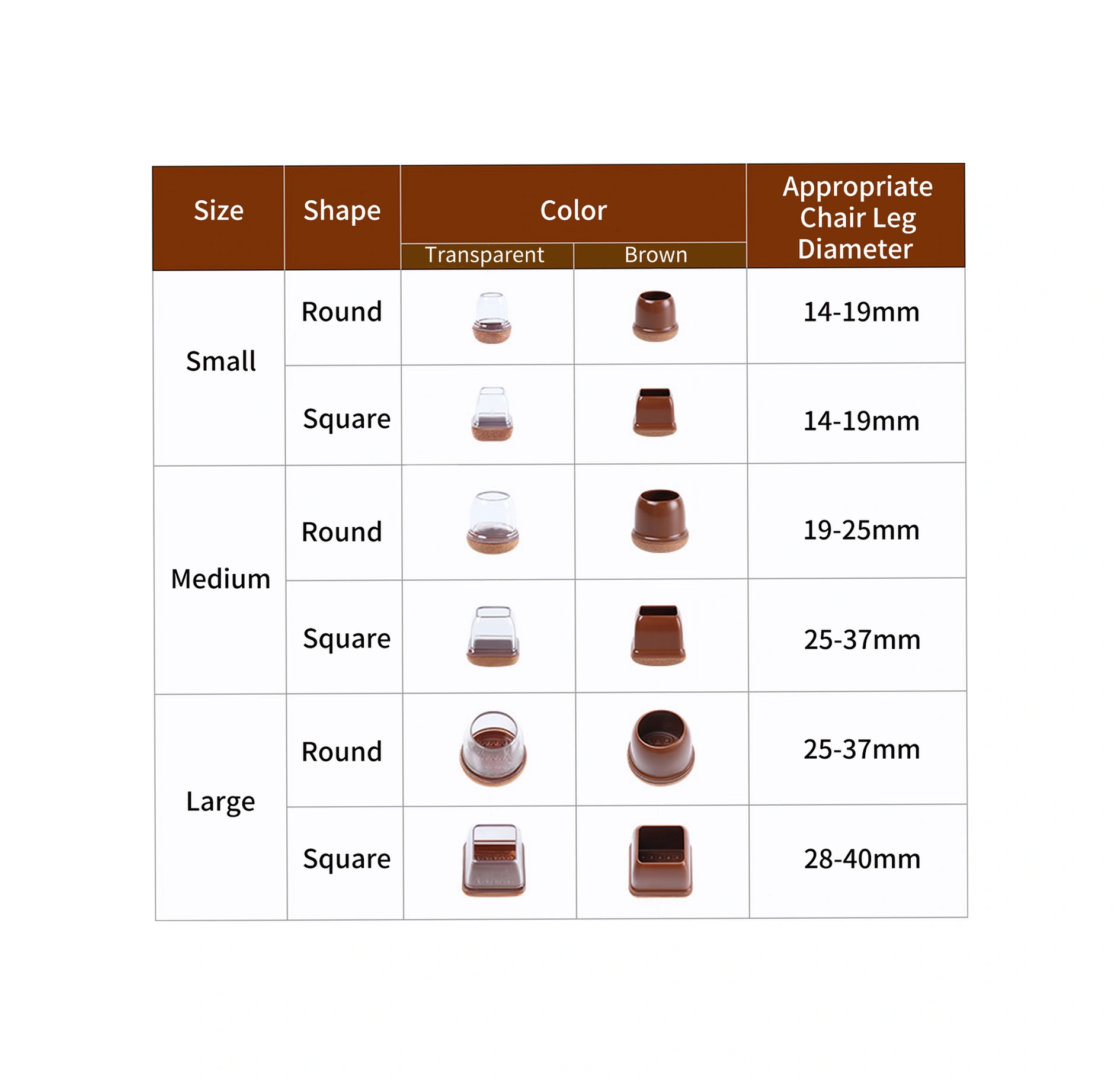 Yaleker Küçük Boy Kahverengi Dairesel Sandalye Ayak Koruması - Sessiz, Dayanıklı, Kalın Tpe Tabanlı Mutfak Ofis Mobilya Ayaklık 8 Adet