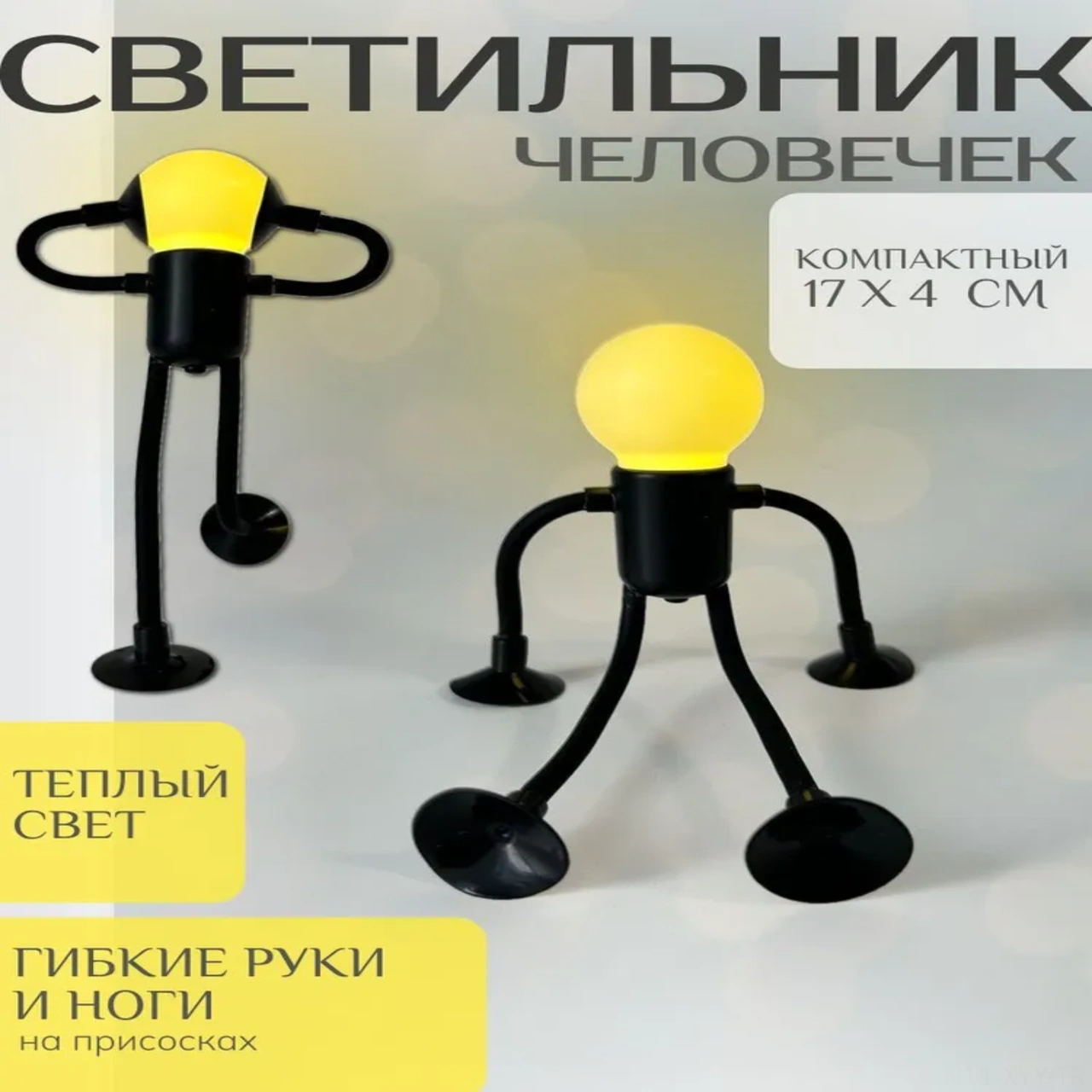 Yaleker Küçük Kişi Figürlü Akıllı Led Gece Lambası - Pil İle Çalışır, Yumuşak Işık, Yatak Odası/çocuk Odası İçin Siyah Desenli Dekoratif Aydınlatma Siyah