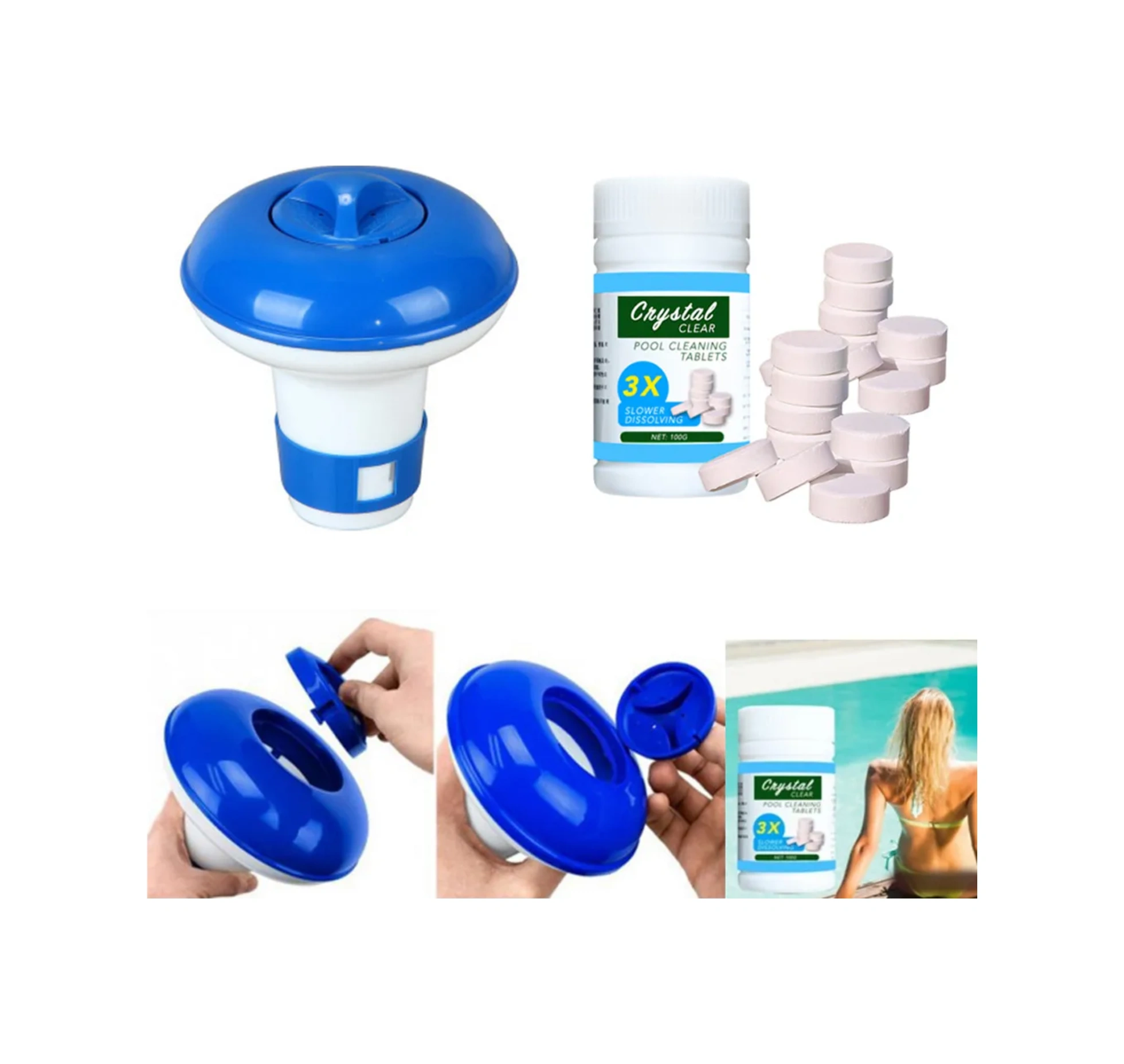 Yaleker Mavi Yüzücü Havuz Temizleyici Seti - Havuz Aksesuarı Ve Ekipmanı, 1 Adet Temizleyici + 100 Adet Flakon Mavi