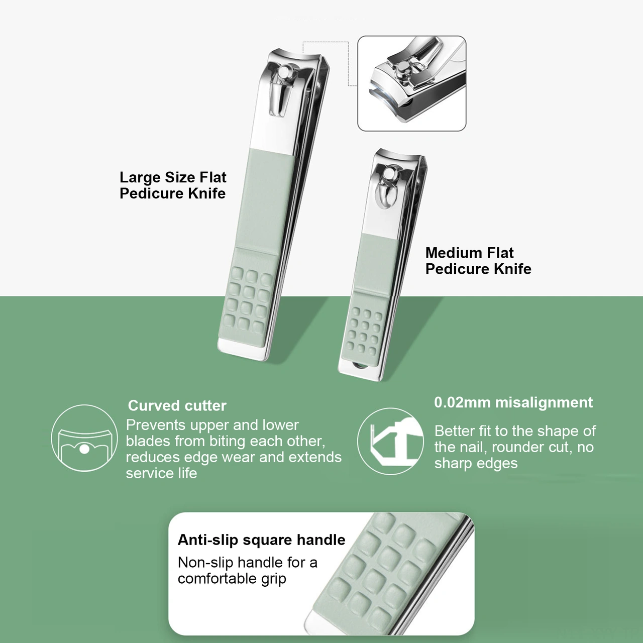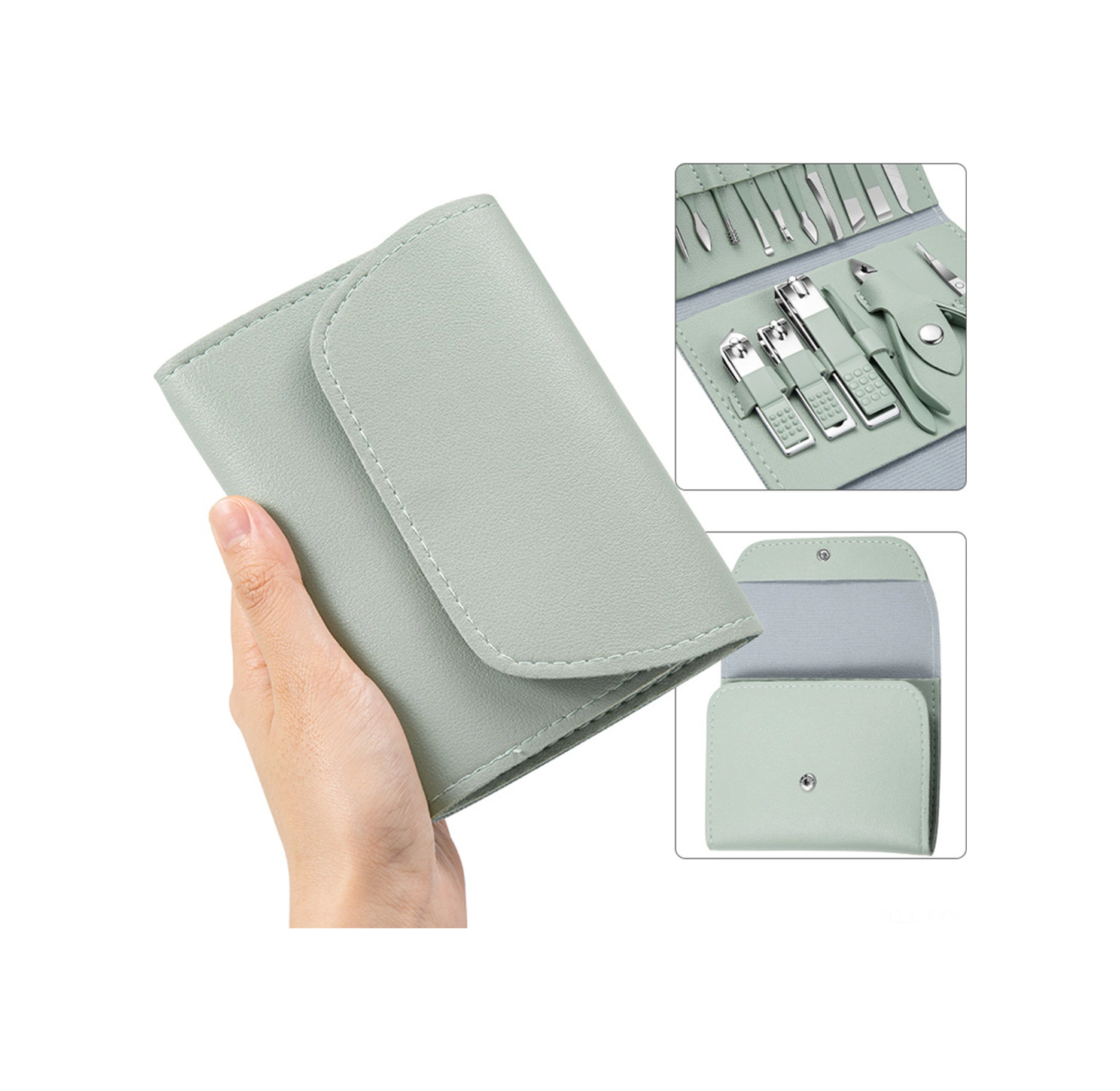 Yaleker Stainless Steel Manikür Takımı - 12 Parça Çekiçli Pedi Kiti, Farklı Renk Seçenekleriyle Tırnak Bakımı Seti Yeşil