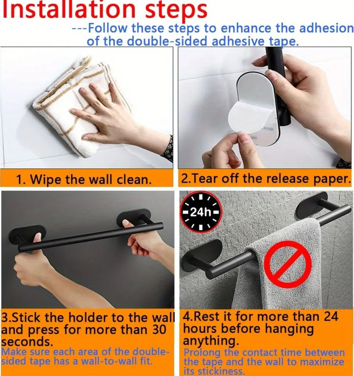 Yaleker Stainless Steel Otomatik Tutucu Banyo Havlu Demiri 40cm, Sıkmadan Kurulum, Evinizde Düzen Ve Estetik Siyah