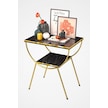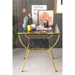 Yan Sehpa Komodin Metal Ayak Çift Gold Bendir 1976 Siyah Mermer Desen