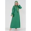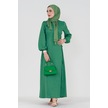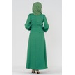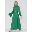 Yanı Bağcıklı Keten Elbise-yeşil-3369-kiremit Kiremit