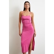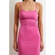 Yanı Büzgülü Askılı Elbise Yırtmaçlı Pembe Pembe