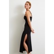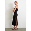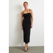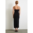 Yanı Büzgülü Askılı Elbise Yırtmaçlı Siyah Siyah