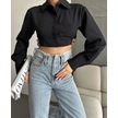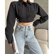 Yanı Kemer Detaylı Crop Gömlek Siyah S4009 Siyah