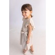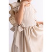 Oliventhekid Yanları Bağcıklı Kolsuz Fırfırlı Keten Sırtı Düğmeli Kız Çocuk Elbise Bej Bej