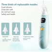 Yaozixa Bebek Elektrikli Burun Emici - Düşük Frekanslı Sessiz - 3 Seviye Emme - Sakinleştirici Müzik - Li-poly Batarya - 3 Silikon Uç Yeşil