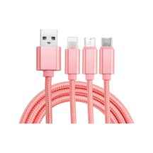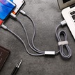 Yaozixa Gri Nylon Örgü 3'ü 1 Kablosu: Lightning/type-c/micro Usb Bağlantıları İle 3 Cihazı Aynı Anda 2a Hızlı Şarj Edebilir