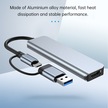 Usb Hub Çoklu Bağlantı Noktası Adaptörü, 4'ü 1 Arada Usb Bağlantı Noktası Ayırıcı, 5 Gbps Veri Aktarımı, Alüminyum Gümüş