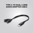 Yaozixa Type-c'den 3.5mm' E Çift Ses Çevirici, İki Kulaklık İçin Ses Bölücü Kablosu Siyah, Bakır Çekirdek, 20cm