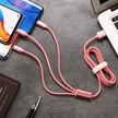 Yaozixa Üçlü Bağlantı Lightning/type-c/micro Usb Nilon Örgü Şarj Kablosu 2a Hızlı Şarj - Pembe
