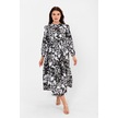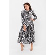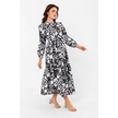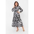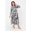 Yaprak Desenli Renkli Pamuklu Yazlık Baharlık Kuşaklı Elbise 2101 Siyah