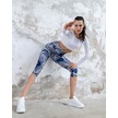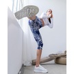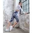 Yaprak Desenli Toparlayıcı Spor Kapri Tayt Lacivert - Beyaz