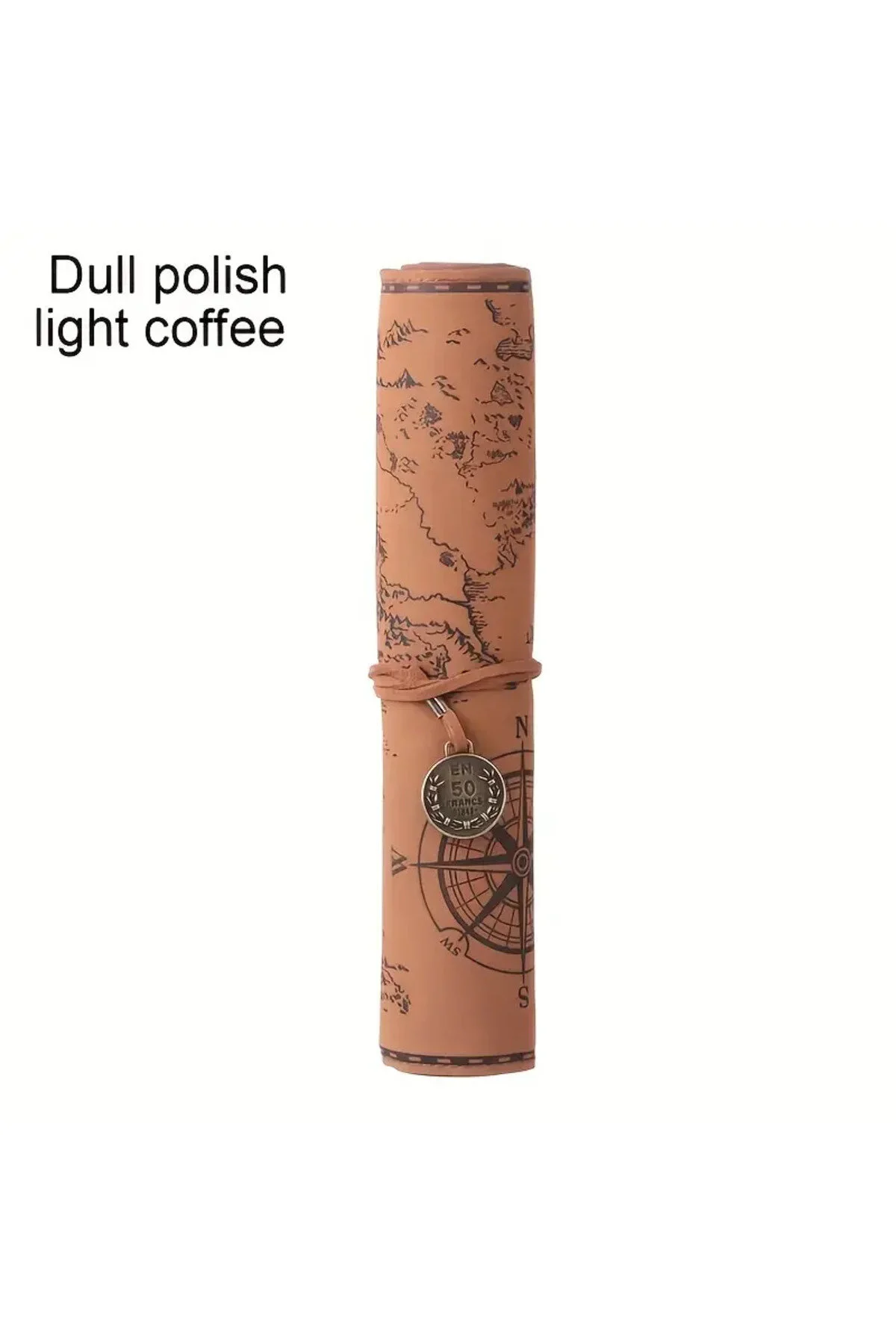 Yaratıcı Hazine Haritası Retro Kalem Kutusu Deri Büyük Kapasiteli Rulo Kalem Çantası Buzlu Açık Kahverengi