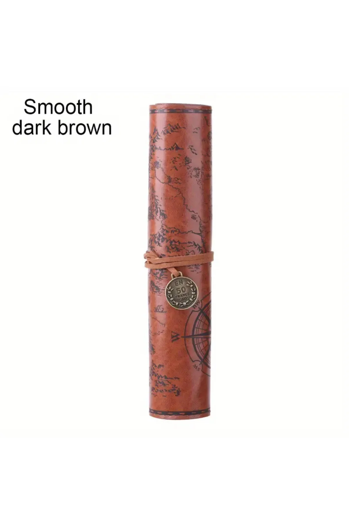 Yaratıcı Hazine Haritası Retro Kalem Kutusu Deri Büyük Kapasiteli Rulo Kalem Çantası Koyu Kahverengi