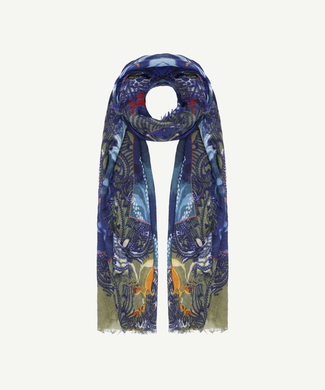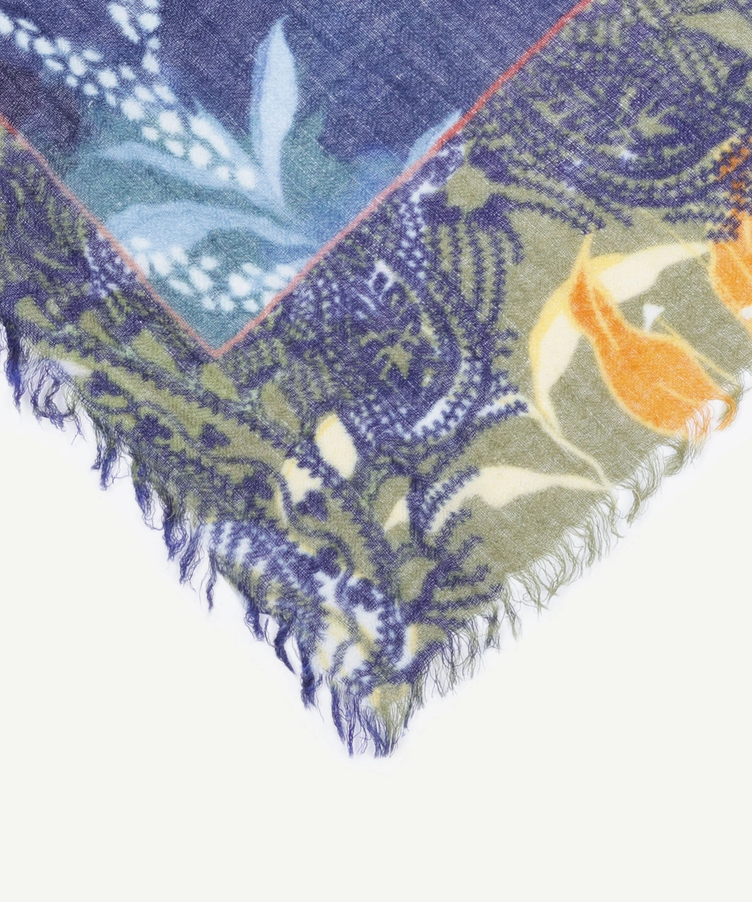 Yargıcı Çiçek Desenli Yün Şal 25kksl1072x 021 Mavi