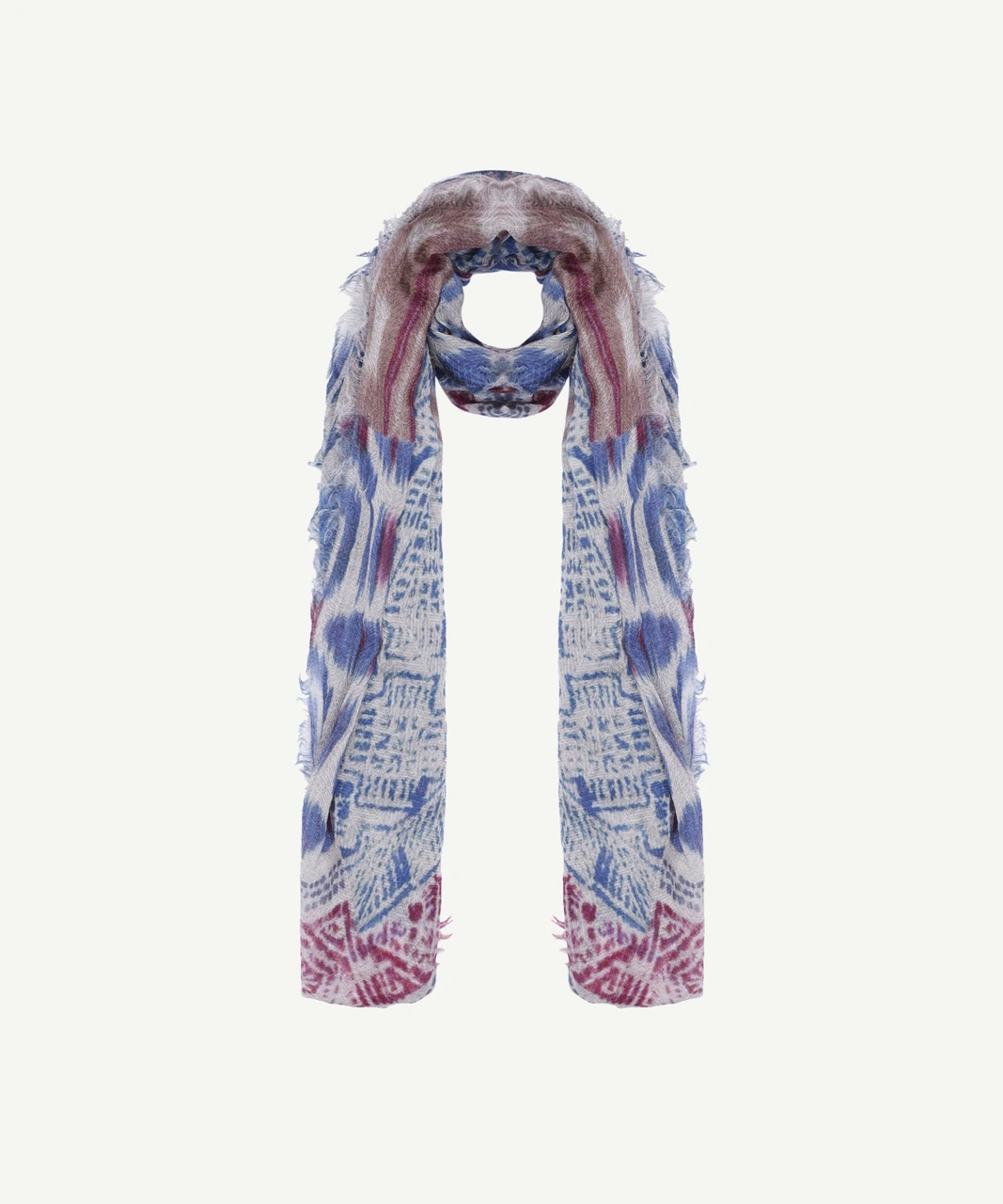 Yargıcı Karışık Desenli Yün Şal 25kksl1071x 021 Mavi