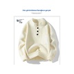 Yarım Balıkçı Yaka Düğmeli Kıvrık Etekli, Her Mevsime Uygun Erkek Kazağı Bej