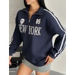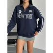 Yarım Fermuarlı Newyork Yazılı Sweat Lacivert