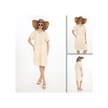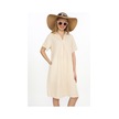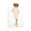 Yarım Kol V Yaka Keten Elbise-9164 Bej