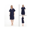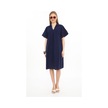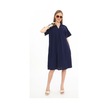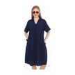 Yarım Kol V Yaka Keten Elbise-9164 Lacivert
