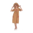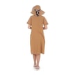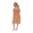 Yarım Kol Yuvarlak Yaka İşlemeli Keten Elbise-9166 Camel