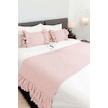 Yatak Runner & Iç Dolgulu Kırlent Seti Çift Kişilik Fırfırlı Toz Pembe Pembe