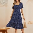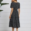 Yaz Aşk Desen Nokta Baskı Elbise Kadın Rahat A-line Kısa Kollu Kare Yaka Ruffles Orta Uzun Şifon Kırmızı Siyah Mavi Yeşil S-xl Kırmızı