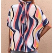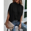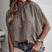 Yaz Dantel-up Leopar Baskı Batwing Kısa Kollu Bluz Zarif Gevşek Rahat Standı Yaka Gömlek Moda Şık Üstleri Kadın 25320 Siyah