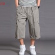 Yaz Erkek Gevşek Kargo Pantolon Rahat Büyük Artı Boyutu Geniş Bacak Çok Yönlü Şort Kırpılmış Pantolon Eşofman Altı Haki