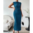 Yaz Kadın Elbisesi Kolsuz Sırt Yırtmaçlı Pileli Dar Elbiseler Mavi