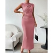 Yaz Kadın Elbisesi Kolsuz Sırt Yırtmaçlı Pileli Dar Elbiseler Pembe