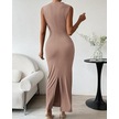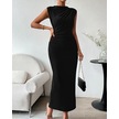 Yaz Kadın Elbisesi Kolsuz Sırt Yırtmaçlı Pileli Dar Elbiseler Siyah