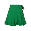 Yaz Kravat Yüksek Bel Düz Renk Fırfırlı Kısa Yarım Vücut Etek Yeşil