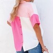 Yaz Moda Rahat Gevşek Gömlek Kadın Patchwork Renk Kısa Kollu Pamuklu Bluz Kadın Düğme Yukarı Gömlek Elbise Tops 26436 Gül Kırmızısı Fuşya